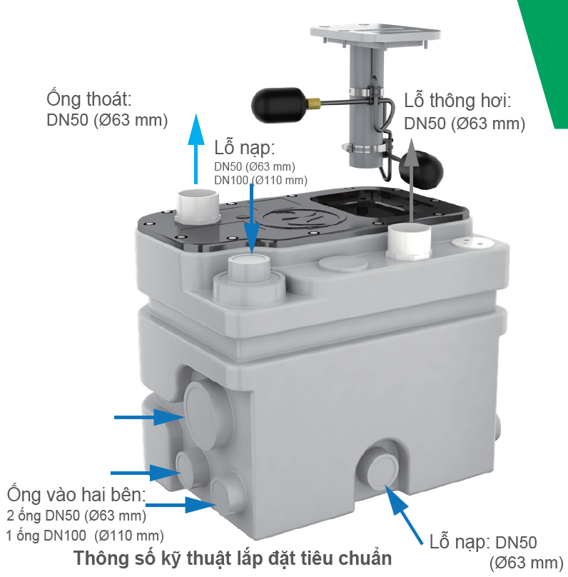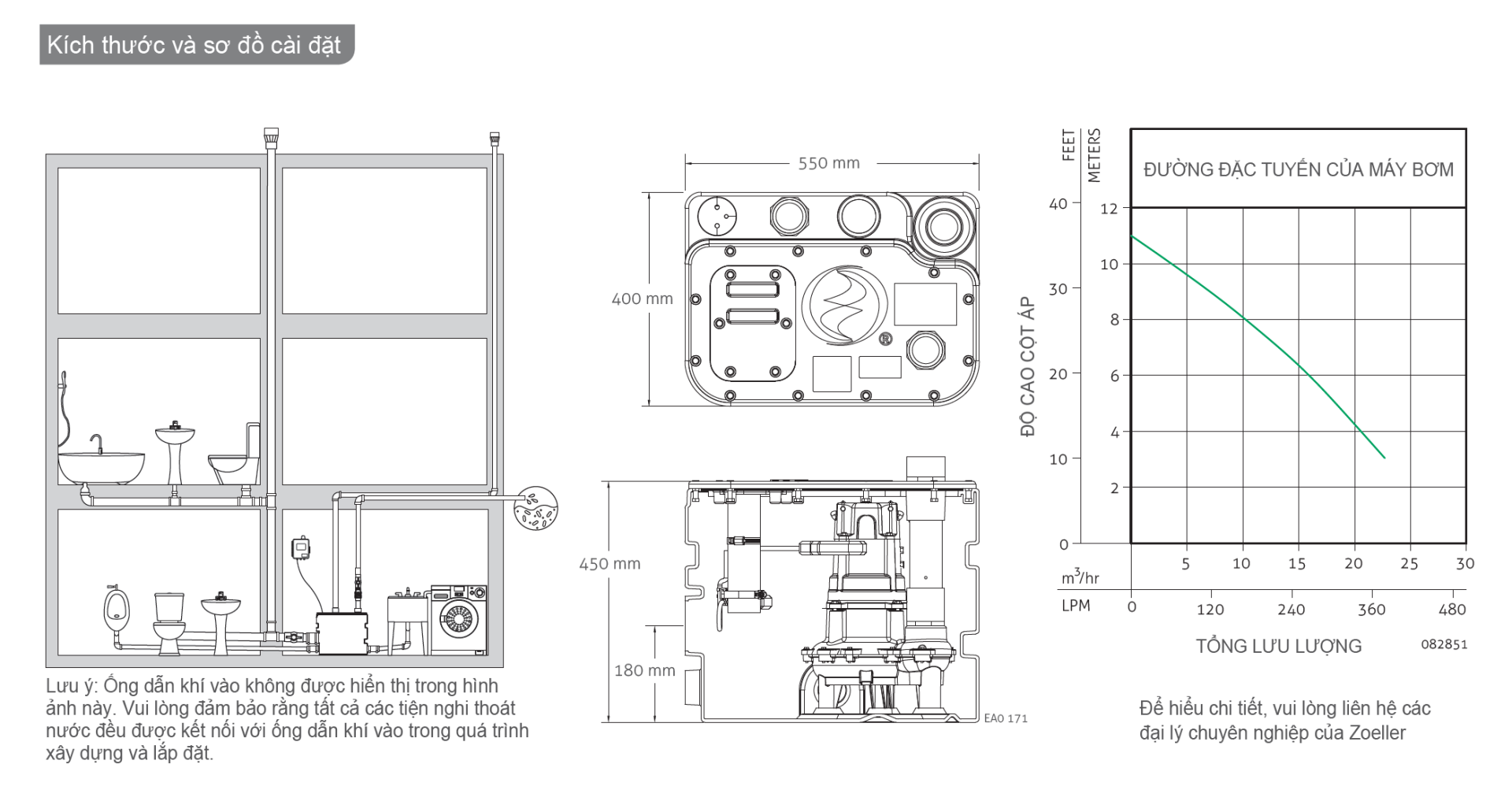 • Phù hợp cho các biệt thự cao cấp, trung tâm mua sắm, siêu thị, khách sạn, nhà hàng, ga tàu điện ngầm, bãi xe và những nơi không thể xả nước thải theo trọng lực.