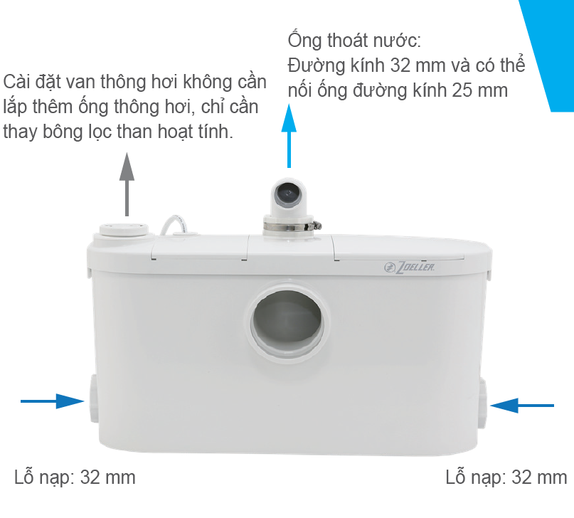 Tích hợp van một chiều đầu nước vào hai bên và van một chiều khuỷu tay đầu ra để ngăn dòng nước thải chảy ngược