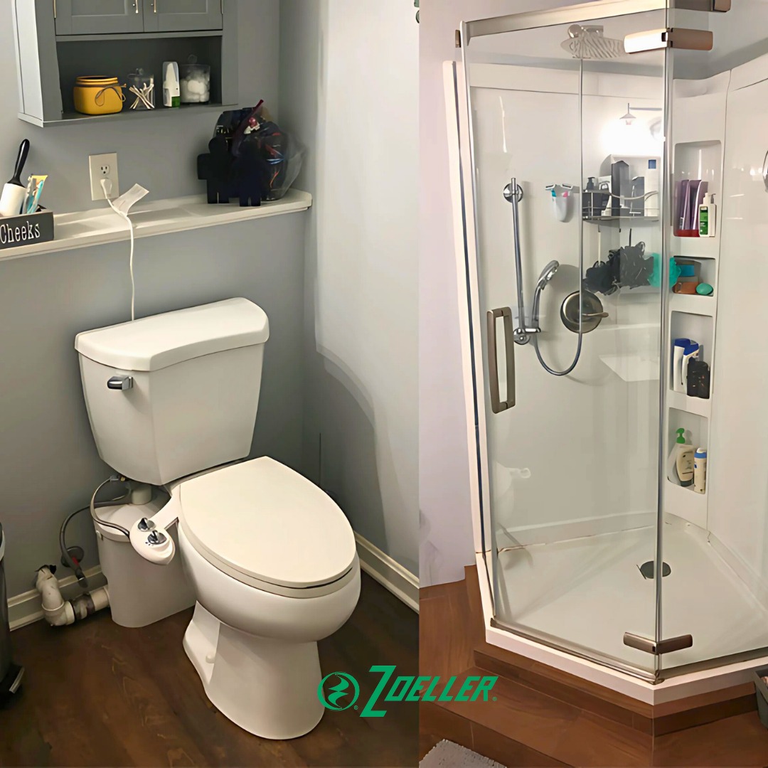 Bồn cầu Zoeller Qwik Jon trong phòng tắm là hệ thống xả ngược đáng tin cậy